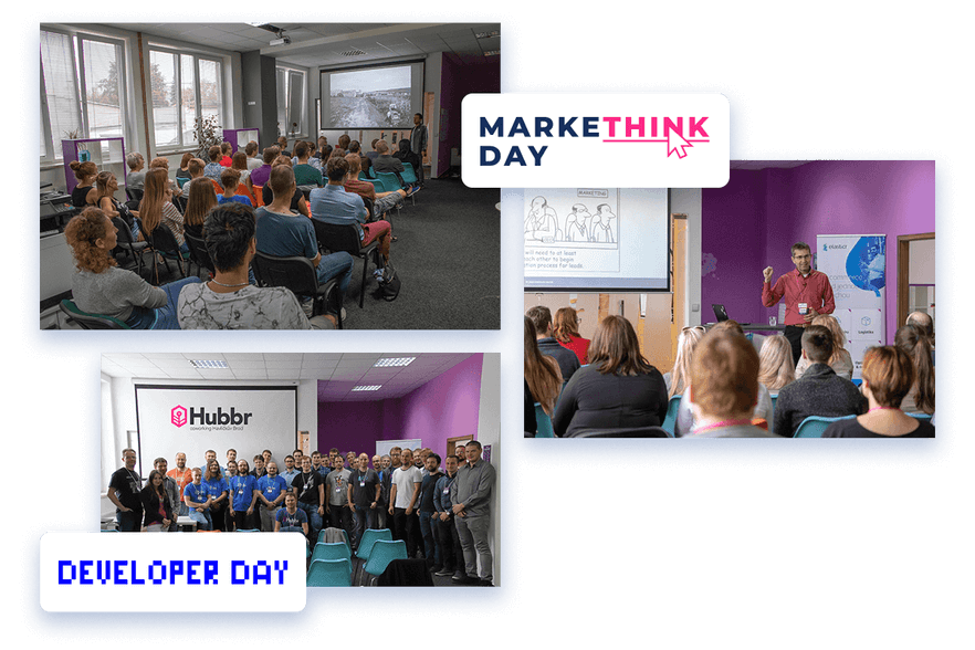 Na akce. A na lidi, kteří na ně dodnes aktivně chodí. Děkujeme. A také na to, že za 2 roky Hubbr hostil přes 80 akcí a dvě konference Markethink Day pro markeťáky a Developer Day, kde si na své přijdou zase milovníci čistého kódu.